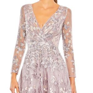 Mac Duggal 20402 Womens EMBELLISHED WRAP OVER ILLUSION LONG SLEEVE A LINE GOWN
