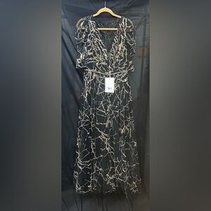 Mac Duggal 20428 NWT EMBELLISHED GATHERED PUFF SLEEVE FAUX WRAP GOWN