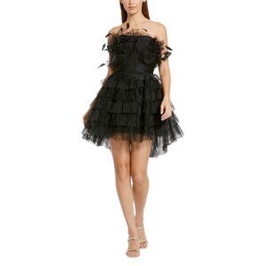 Crafted from delicate tulle, this dress features feathered detailing that adds a touch of movement. The strapless design enhances your silhouette, while the fit and flare silhouette create a flattering shape.