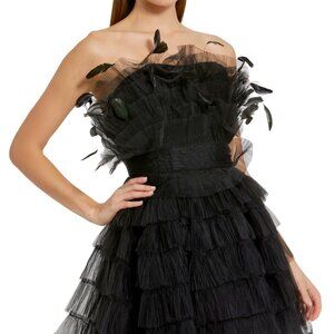 Mac Duggal 20529 Size 6 Black Feathered Strapless Tulle Ruffle Ruffled Dress