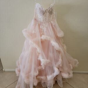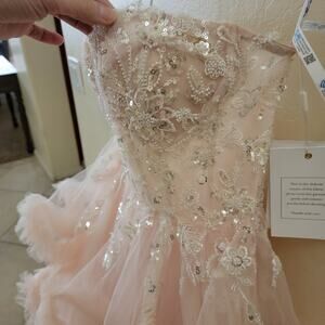 Mac Duggal 20542 Pink 8 Strapless Corset Tulle Ruffle Formal Gown Maxi Dress