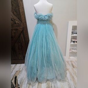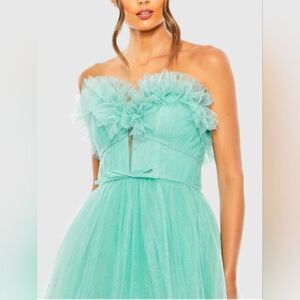 Mac Duggal 20555 Strapless Glitter Tulle Gown NWT size 4 Aqua Blue/Green
