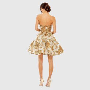 Mac Duggal 20718 Size 2 Gold Bronze Strapless Brocade Mini Dress With Pockets