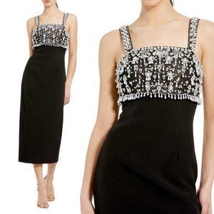 Mac Duggal 2226 Size 4 Black Wide Strap Jeweled Embellished Top Midi Dress NWT