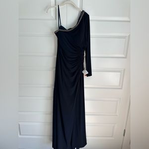 Mac Duggal 26039 Midnight One Shoulder Long Sleeve Asymmetric Formal Gown NWT