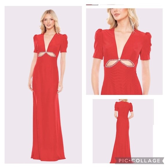Mac Duggal 2630 NWT HOLIDAY RED Cut Out Puff Sleeve Gown size 12