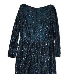 Mac Duggal 26445 Blue Long Sleeve Sequined Evening Gown | Size 14
