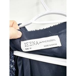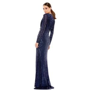 Mac Duggal 26490 Midnight Blue Sequined Long Sleeve V-Neck Cocktail Gown