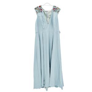 Mac Duggal 26540 Powder Blue Beaded Cap Sleeve V-Neck A-Line Gown