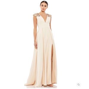 Mac Duggal 26540 Womens Beaded Cap Sleeve V Neck A Line Gown Dress