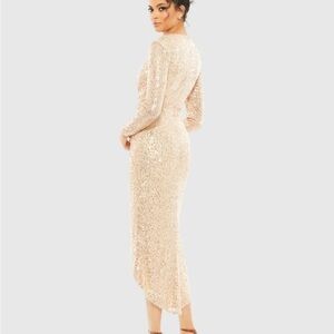 Mac Duggal 26549 NWT SEQUINED HI-LO FRONT TWIST MIDI DRESS