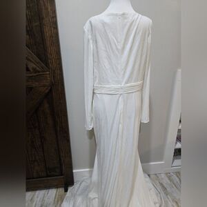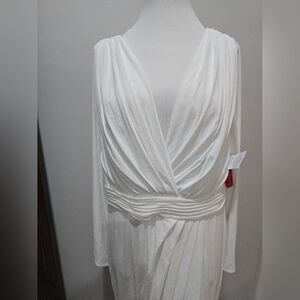 Mac Duggal 26554 V-Neck Long Sleeve High Slit Gown NWOT size 14 White