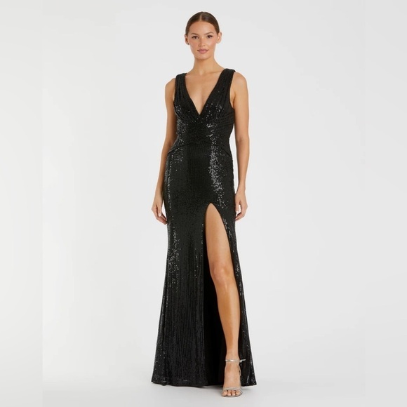 Mac Duggal 26598 NWT V-Neck Sequin Wrap Waist Gown