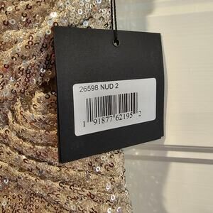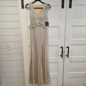 Mac Duggal 26598 Silver Sequin Wrap Waist Gown Formal Dress V Neck Nude Size 2