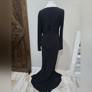 Mac Duggal 26686 Embellished Jersey Long Sleeve Ruched Gown NWT size 8 Black