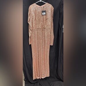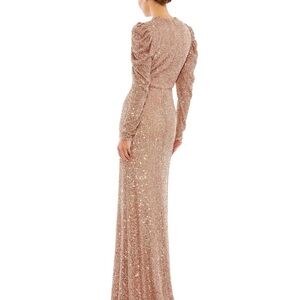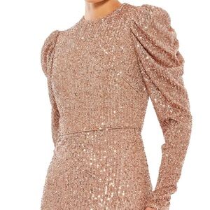 Mac Duggal 26692 NWT SEQUINED HIGH NECK PUFF LONG SLEEVE COLUMN GOWN