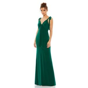 Mac Duggal 26696 NWT JERSEY LOW BACK BOW SHOULDER GOWN