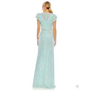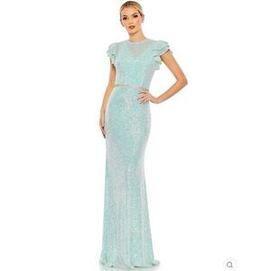 Mac Duggal 26942 Womens SEQUINED HIGH NECK FLUTTER SLEEVE GOWN Dress Blue