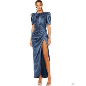 Mac Duggal 27014 PUFF SLEEVE PLEATED BODICE DRAPED GOWN 8 Runs Small
