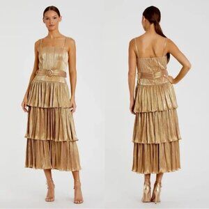 Mac Duggal 27062 Tea-Length Gold Metallic Party Dress NWT size 6