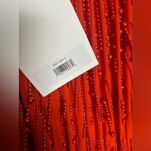 This dress combines an elegant halter neckline adding a feminine touch. Adorned with red pearls radiating sophistication and luxury.
