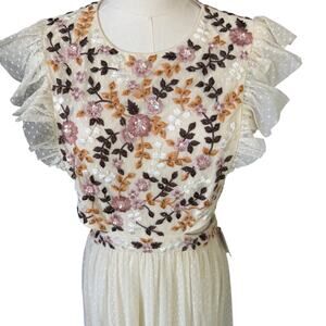 Tags: wedding, wedding guest, cocktail, formal, event, special occasion, party, fancy, birthday, red carpet, prom, homecoming, holiday, new years, holiday, embroidered, floral, cream, feminine