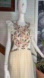 Stunning gown with floral embroidery and layered skirt. Features delicate ruffle details.