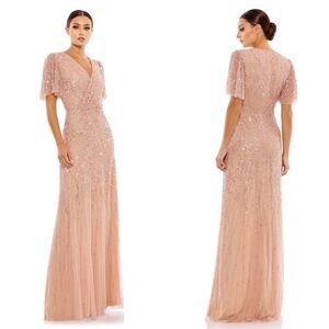 Mac Duggal 35109 Size 14W(18) Leafy Embellished Flutter Sleeves Gown