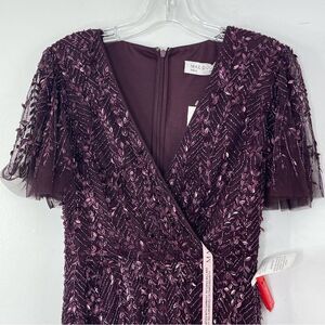 Mac Duggal 35109 Size 2 Surplice Bodice Leafy Embellished Flutter Sleeves Gown