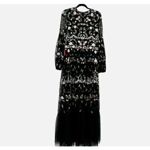 Elevate your presence at any elegant affair with the Mac Duggal 35111, a masterpiece crafted from luxurious tulle that gracefully contours into a refined column silhouette. This long dress enchants with intricate floral embroidery and delicate flower accents, offering a tactile richness that captivates the senses. The thoughtfully designed crew neckline and puffed long sleeves create a majestic frame, while the dramatic back zipper closure ensures a flawless fit. Ideal for memorable evenings or distinguished mother-of-the-bride moments, this gown promises to envelop you in sophistication, helping you command attention with regal poise and timeless allure.