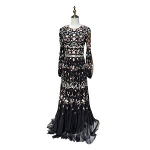 Mac Duggal 35111 Floral Embellished Embroidered Gown Blouson Sleeves Size 6 NWT