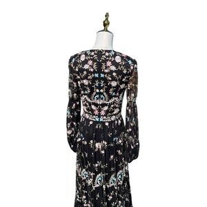 Adore the romance and ease of boho-chic frocks? You're in for a treat with this ethereal beauty made from soft netting embroidered with pastel botanicals. The dress is styled with a jewel neckline, sheer bishop sleeves, and a floaty skirt.