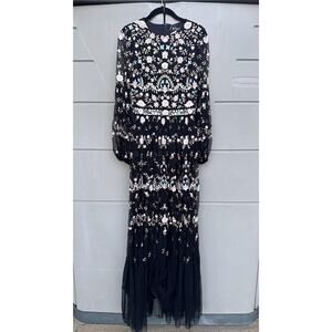 Mac Duggal Black Floral Embroidered Gown Size 2 – Sheer Long Sleeve Maxi Dress Formal Evening