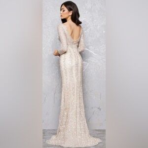 Mac Duggal 4247 / 4247D NWT Three-Quarter Sleeve Embellished Gown in Nude