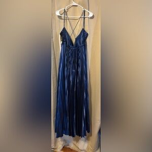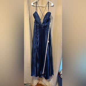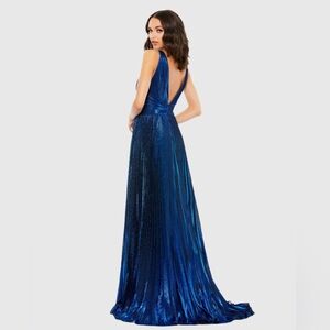 Mac Duggal 49036 NWT Blue Plunge Neck Pleated Metallic Gown