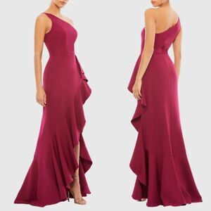 Mac Duggal 49089 Size 2 Berry Red One Shoulder High Slit Ruffle Maxi Dress Gown