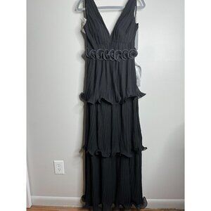 Mac Duggal 49281 Black Tiered Formal Pleated Evening Gown Dress Size 2 NWT
