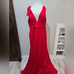 Mac Duggal 49454 Sleeveless V Neck Bow Detail Mermaid Gown NWOT size 14 Red