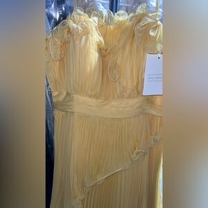 Mac Duggal 49537 NWT Butter Yellow Pleated Tiered Ruffled Strapless Gown