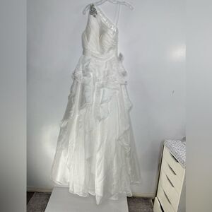 Mac Duggal 49541 Jewel Broach One Shoulder Cascade Layered Gown, White, Size 4