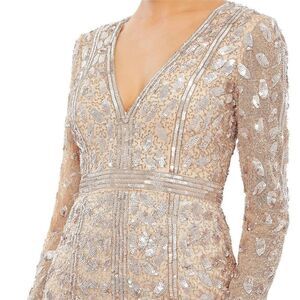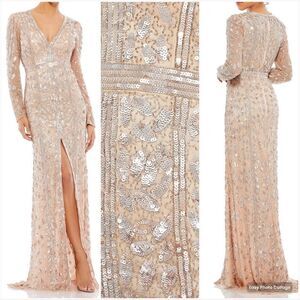 Mac Duggal 5002 Womens EMBELLISHED FRONT SLIT LONG SLEEVE GOWN