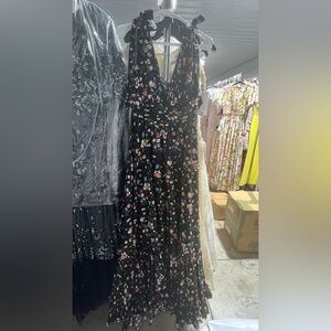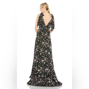 Mac Duggal 50657 NWT Floral Printed Bow Tie Detailed Ruched Waistband Dress
