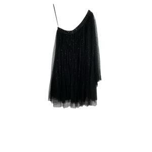Make a statement in our One Shoulder Embellished Tulle Mini Dress. This eye-catching dress features a single shoulder strap and delicate tulle adorned with embellishments, offering a perfect blend of elegance and glamour for any special occasion.