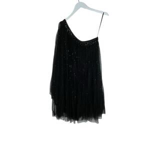 Mac Duggal 50689 Black One Shoulder Embellished Tulle Mini Dress Size 8 $298