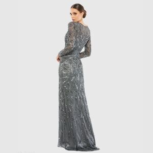 Mac Duggal 5124 Size 4 Charcoal Gray Beaded Long Sleeve Evening Gown Maxi Dress