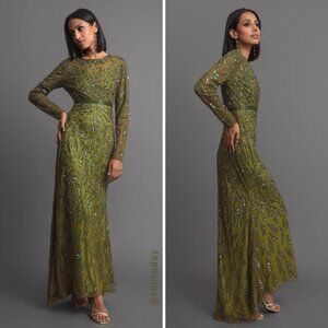 Mac Duggal 5124 Size 6 Olive Green Beaded Long Sleeve Evening Gown Maxi Dress