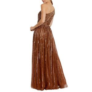 Mac Duggal 5220 Size 2 Copper Brown Sequin One Shoulder Gown Long Maxi Dress