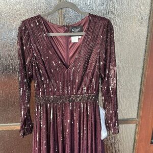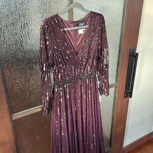 Shine in this elegant purple sequin evening gown. Perfect for special occasions.