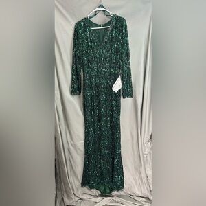 Mac Duggal 5451 NWOT LONG SLEEVE BEADED V-NECK GOWN
