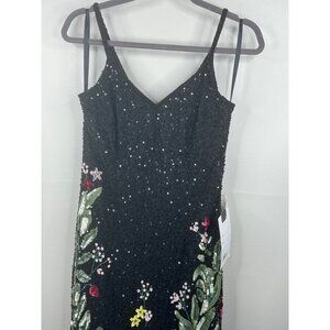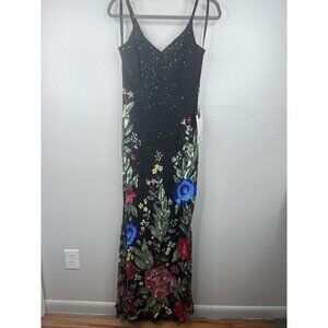 Mac Duggal 5475 Floral Embellished Spaghetti Strap Gown Size 0 NWT Black Multi